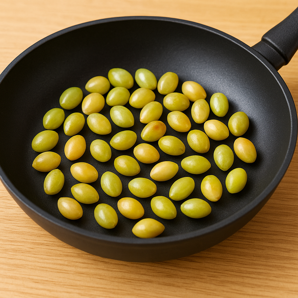후라이팬에 굽는것이 가장 간단하고 빠르게 즐길 수있는 방법 입니다. 기름은 두르지 않은 코팅이 잘 된 후랑팬에 은행과 굵은소금을 약간 넣고 약한불에서 살살 굴려가면서 은행을 익힙니다. 은행의 겉표면이 노릇노륵해 지면 잘 익은것 입니다.