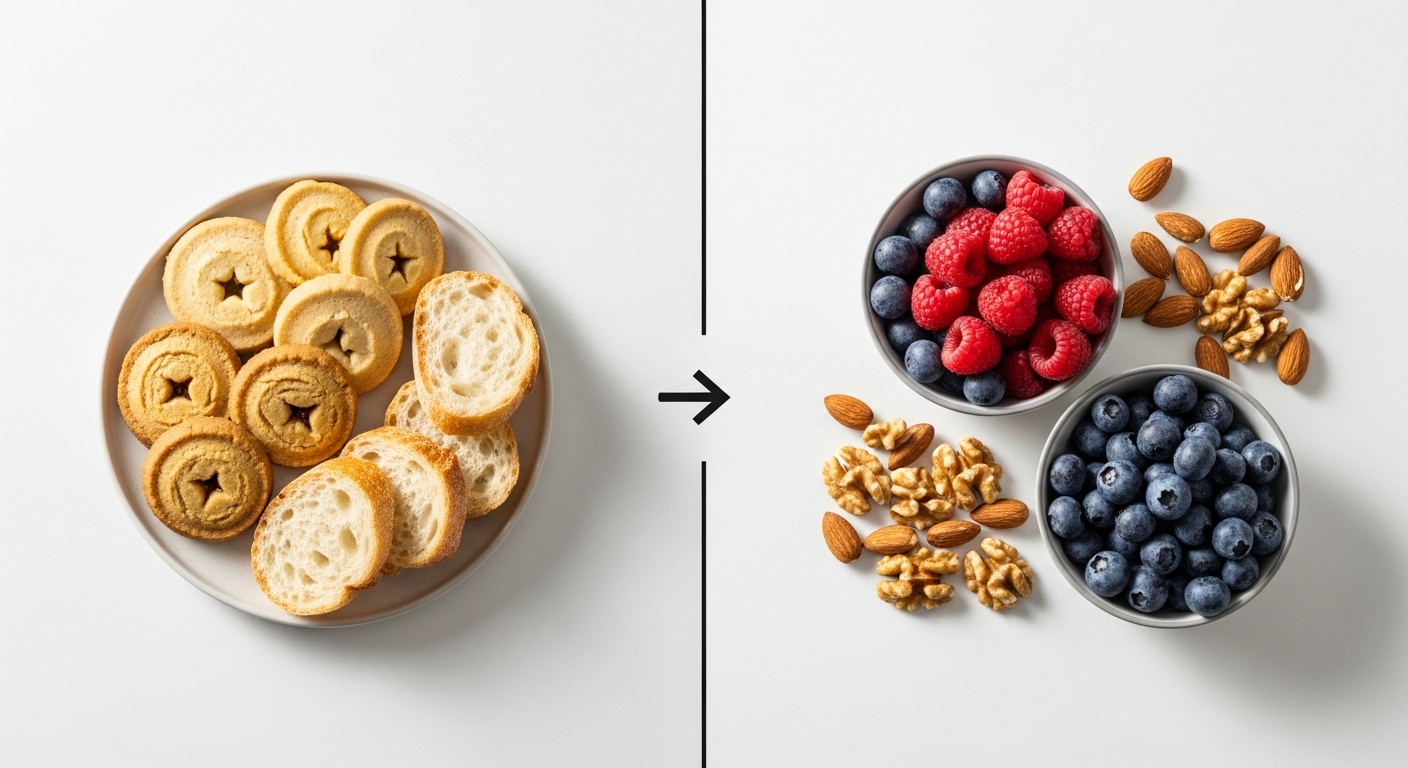 과자나 빵은 베리류나 견과류 한줌으로