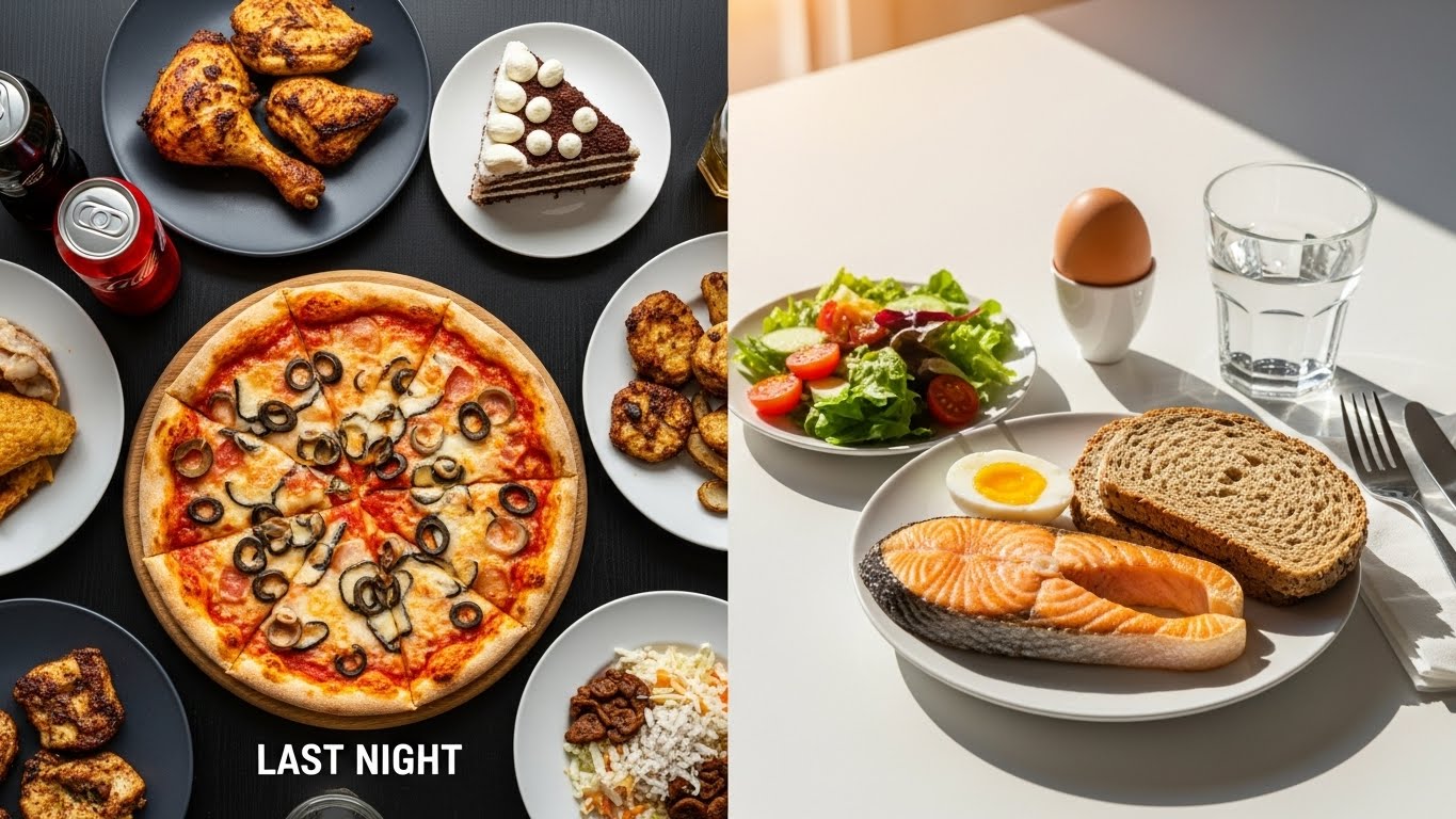 과식한 다음 날일수록, 아침을 생략하는 것보다 “어떻게 구성할지”를 고민하는 편이 훨씬 효과적입니다.