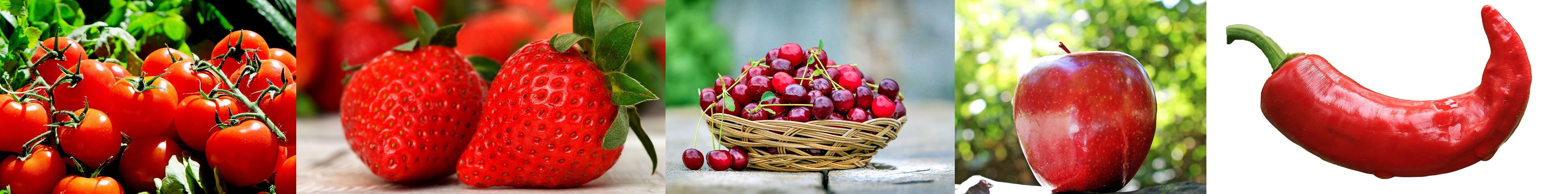 빨강색 식품으로는 수박, 토마토, 딸기, 자두, 사과, 고추, 체리 등이 있습니다.