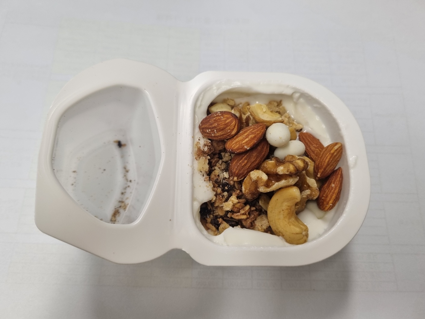 여기에 믹스견과류 한봉지를 섞어서 먹으면