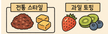 5) 기타 이색 재료 :  찹쌀떡, 캔후르츠, 치즈케이크