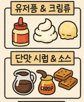 3) 유제품 재료 : 연유, 우유, 딸기우유, 생크림, 아이스크림, 요거트