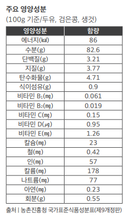 두부, 두유, 선식, 두유등은 예전에는 주로 하얀콩인 대두로 만들었지만 점점 검은콩으로 만들 가공품들이 건강한 음식으로 주목받고 있습니다. 덕분에 요즘은 "검은콩 o o" 라고 이름 붙은 식품들이 매우 친숙하게 느껴 집니다.