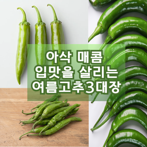 오늘은 여름고추의 3대장으로 불리는 오이고추, 청양고추, 꽈리고추의 특징, 맛과영양 그리고 활용법을 비교해 볼께요!!