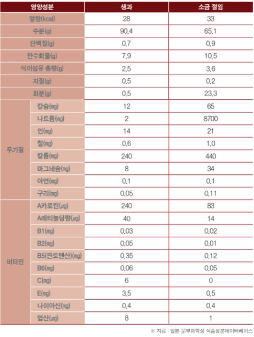 본초강목 등 본초서의 기록에 의하면 매실은 만성 기침, 하열에 의함 가슴의 열기나 목마름, 학질, 만성설사, 혈변, 혈뇨 등을 치료하는 것으로 알려져 있는데 매실 생과 및 소금절임에는 각종 무기영양소와 비타민이 함유되어 있을 뿐만 아니라 각종 항산화 물질들이 풍부하게 들어있습니다.