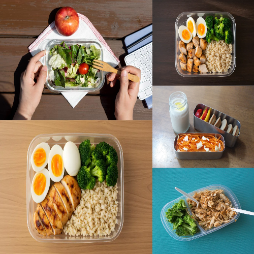 점심용 도시락은 한끼 식사로서 에너지를 충분하게 공급하고 , 오후 업무 활동을 할 수있도록 탄수화물, 단백질, 지방, 비타민, 미네랄 구성이 균형있게 구성되는 것이 좋습니다. 탄수화물은 잡곡밥, 고구마, 감자 등 소화가 잘되는 복합탄수화물 형태가 혈당을 급격하게 올리지 않으면서도 포만감을 오래 유지하고, 지방은 아보카도, 견과류등 식물성 불포화지방산으로 구성하는 것이 좋습니다. 단백질은 닭가슴살, 두부, 달걀, 콩류처럼 도시락으로 싸기 편하면서도 양질의 단백질이 함유된 식품으 좋습니다. 비타민과 미네랄은 샐러드류나 제철과일로 구성하는 것이 좋습니다. 매일 같은 식재료로 구성된 샐러드는 자칫 지겨울 수 있어서 제철 과일 혹은 냉동과일을 적절히 활용해서 샐러드를 만드는 것도 좋습니다.