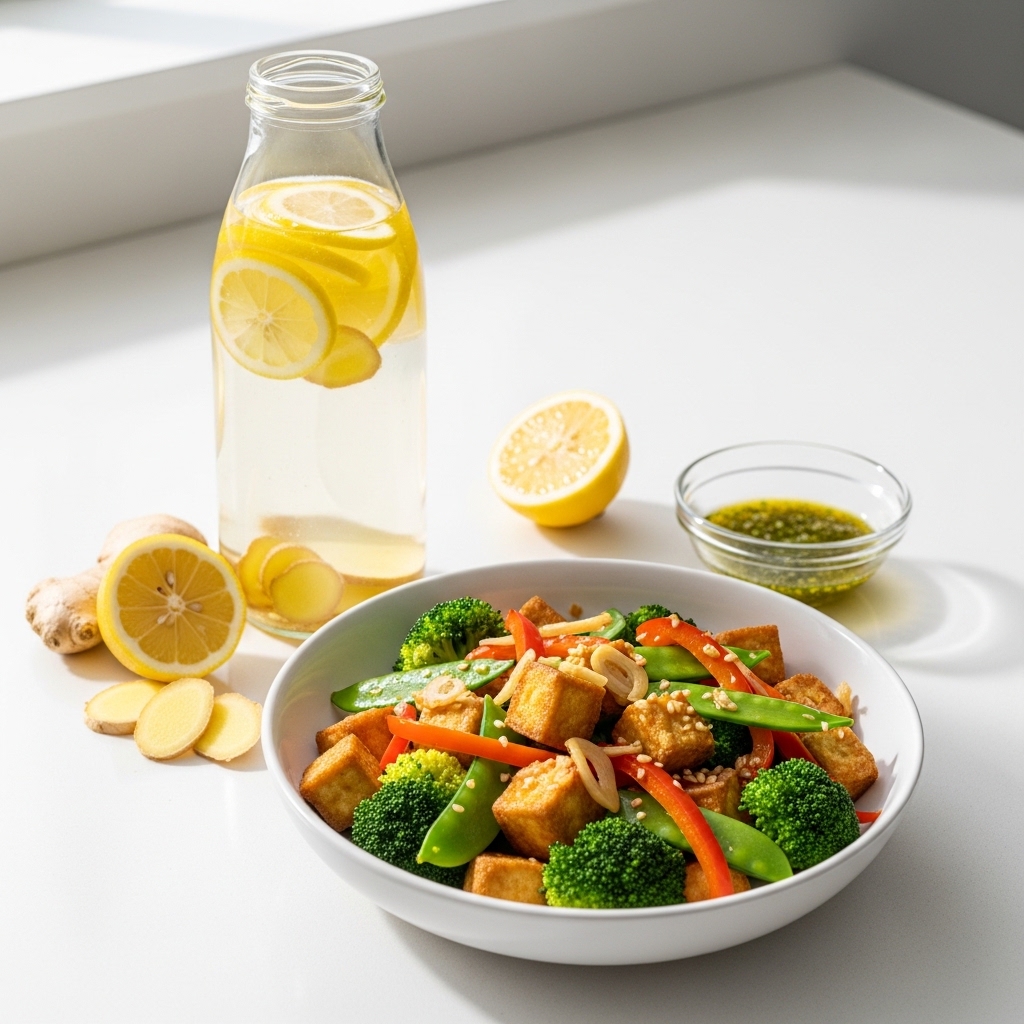 신선한 생강 슬라이스 2~3조각과 레몬 슬라이스를 물 1리터에 넣어 3~4시간 정도 충분히 우려내어 마셔보세요. 생강의 진저롤 성분은 체온을 미세하게 높여 신진대사를 촉진하고, 레몬의 비타민 C는 면역력을 강화합니다. 특히 평소 맹물을 마시기 힘들어하는 분들에게 훌륭한 대안이 되며, 몸속 노폐물 배출(디톡스)과 갈증 해소에 탁월한 효과가 있습니다.