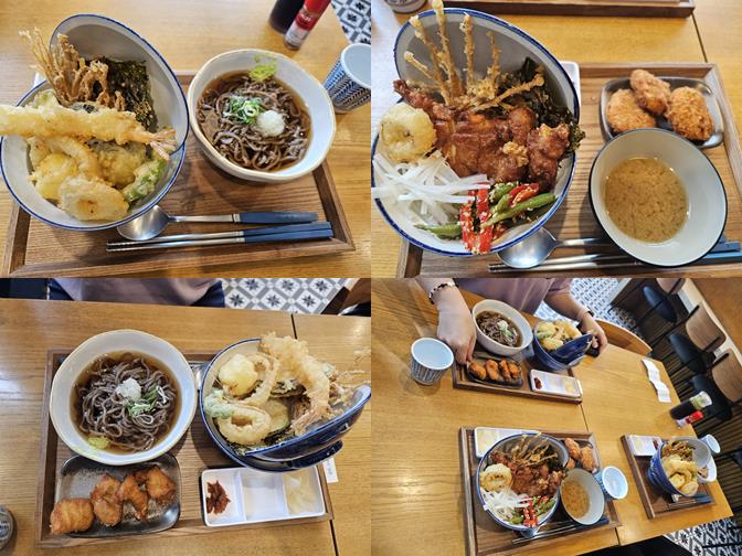 전 치킨스테이크 텐동을 먹었는데 닭다리살이 부드럽고 밥과 텐공과 야채의 간이 완벽했습니다.