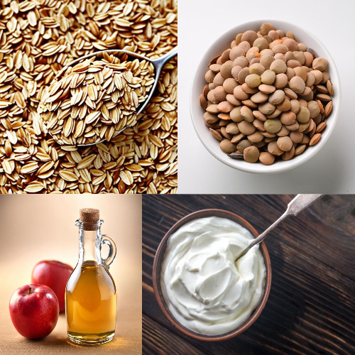 귀리는 수용성 식이섬유소인 베타글루칸이 풍부해서 혈당과 동시에 콜레스테롤도 조절해 줘서 최근 각광받는 식품 입니다. 일반적인 귀리는 밥에 섞어서 먹을 수 있고, 귀리를 압착한 오트밀은 다양한 음식으로 조리 할 수 있습니다.