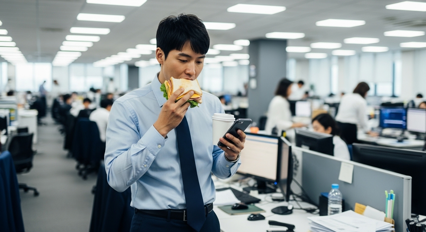 출근길 한 손에는 커피, 점심은 10분안에 해결, 빨리먹는 이 습관은 소화기 부담을 느끼지 전에 더 많이 먹게 됩니다.