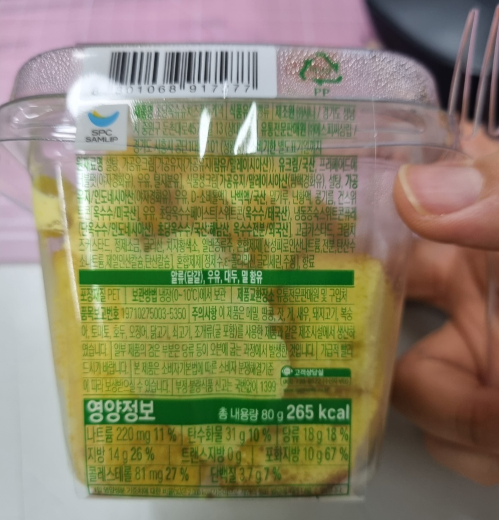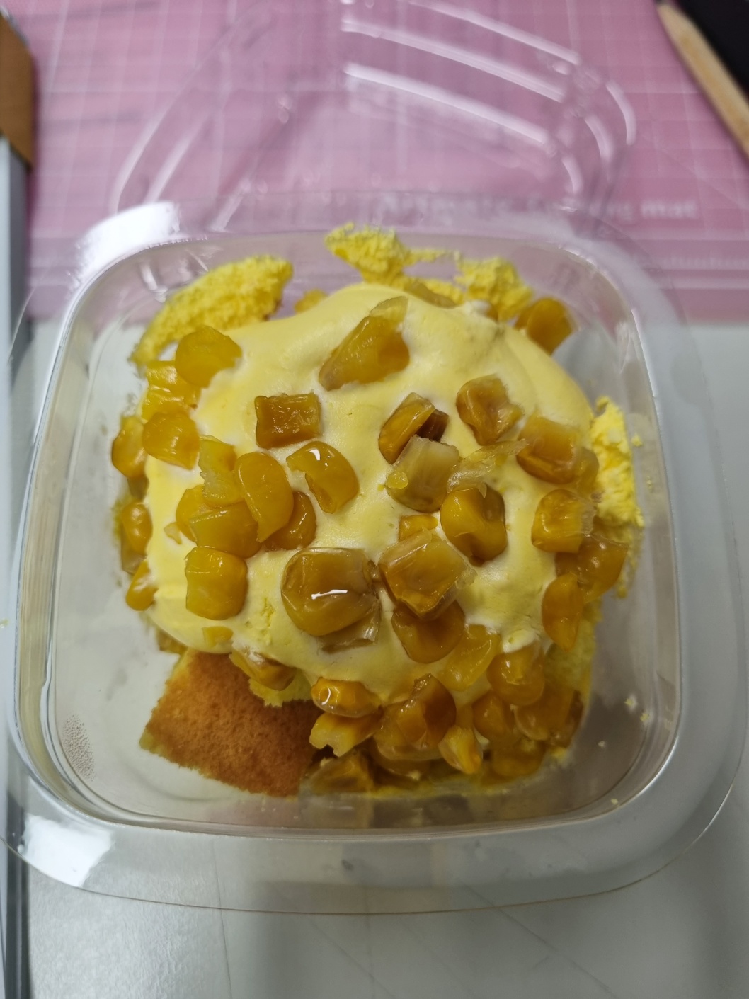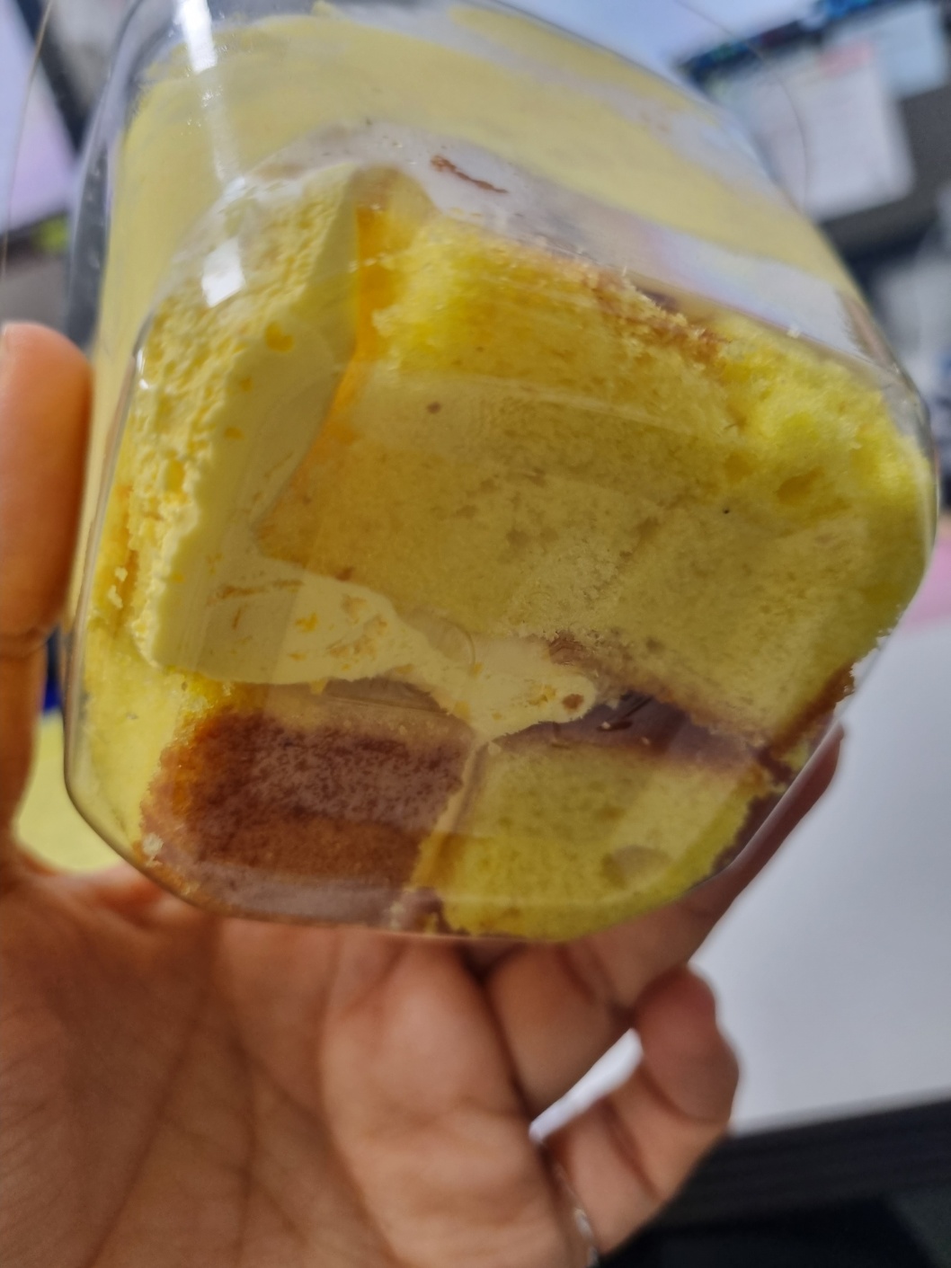카스테라를 컵 모양으로 만든게 아니라 깍두기 형태로 잘라서 용기에 크림과 함께 자연스럽게 담아낸 형태가
